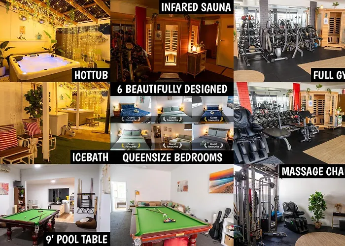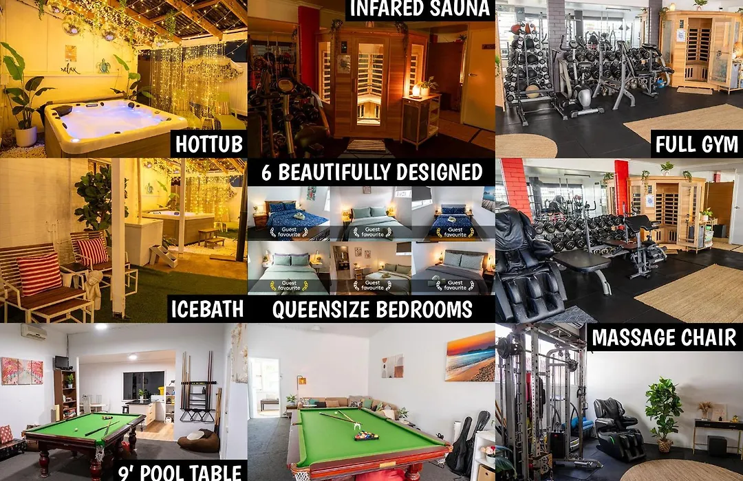 Das 6-Zimmer-Apartment Hot Tub, Ice Bath, Gym, Sauna, Pool Table Coorparoo Haven Brisbane liegt in 3 km Entfernung von der Uferpromenade am Brisbane River und bietet WLAN für Geschäftsreisende und Urlauber. Die Gäste können einen Wellnessbereich nutzen und sich in einem Jacuzzi und einer Sauna vor Ort entspannen.